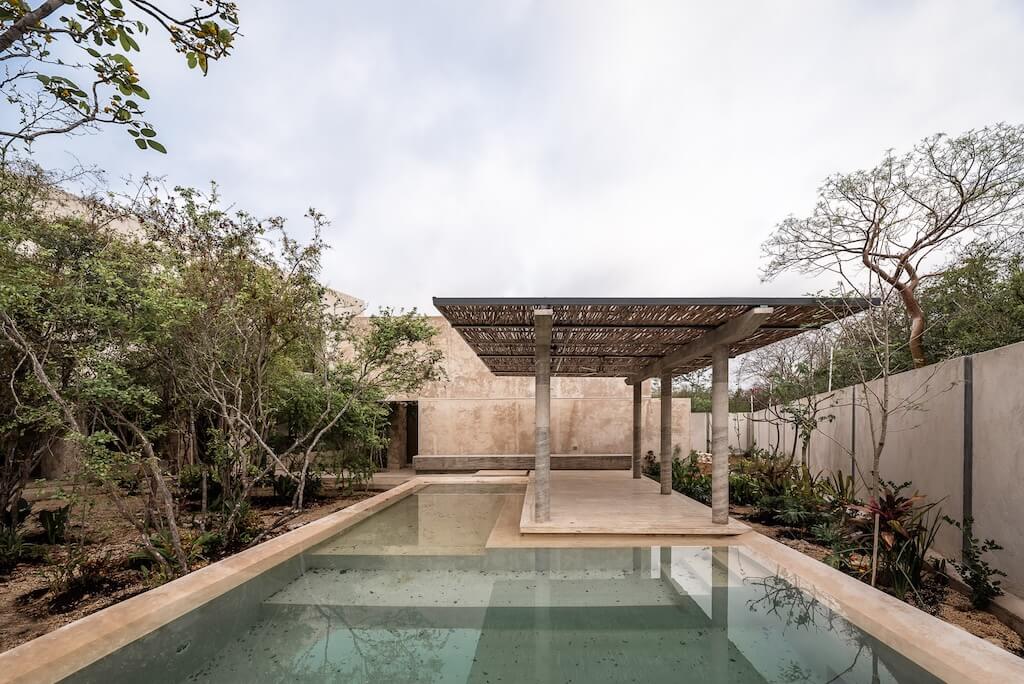 By gathering trees around a courtyard, the space turns into a sort of Yucatecan jungle, and we are also creating green views for every interior space of the home.