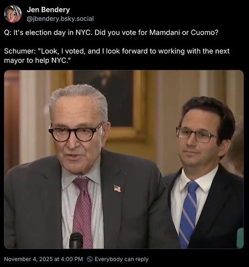 “Q: It’s election day in NYC. Did you vote for Mamdani or Cuomo?