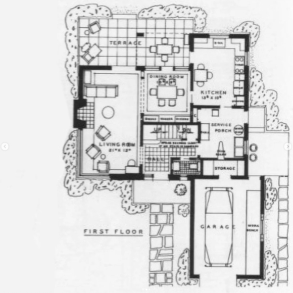 I would, however, rework the “Service Porch” downstairs to turn it into an office and knock out the wall between the kitchen and dining room. Upstairs, I would knock out the wall between the two bedrooms at the left and run a wall (with a door from the hall to the newly-enlarged bedroom) where the stair railing is on the left side of the hall.