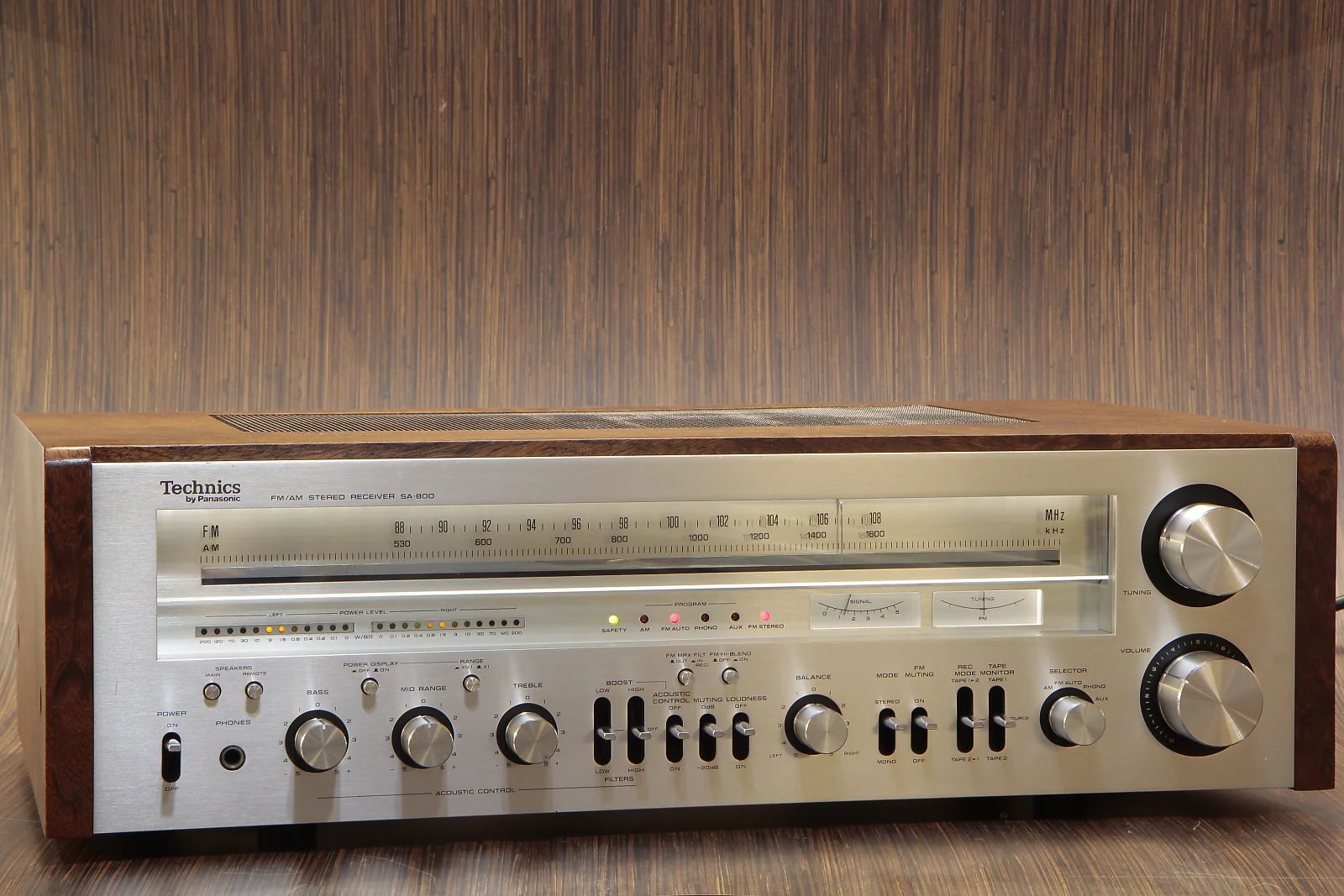My first purchase was a Technics SA-800 receiver. I remembered drooling over this whole line of receivers back in 1978. The styling was so different than anything else on the market at the time the first time I sawthem I got whiplash walking past. Gone were the typical blue or green on black backlit tuning dials, replaced by soft, indirect lighting shining down on brushed aluminum.