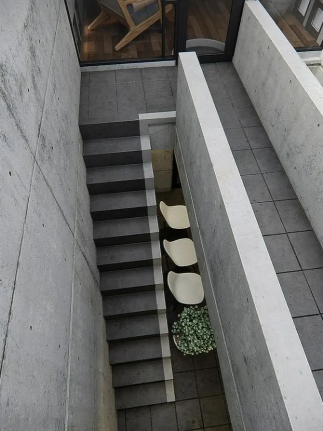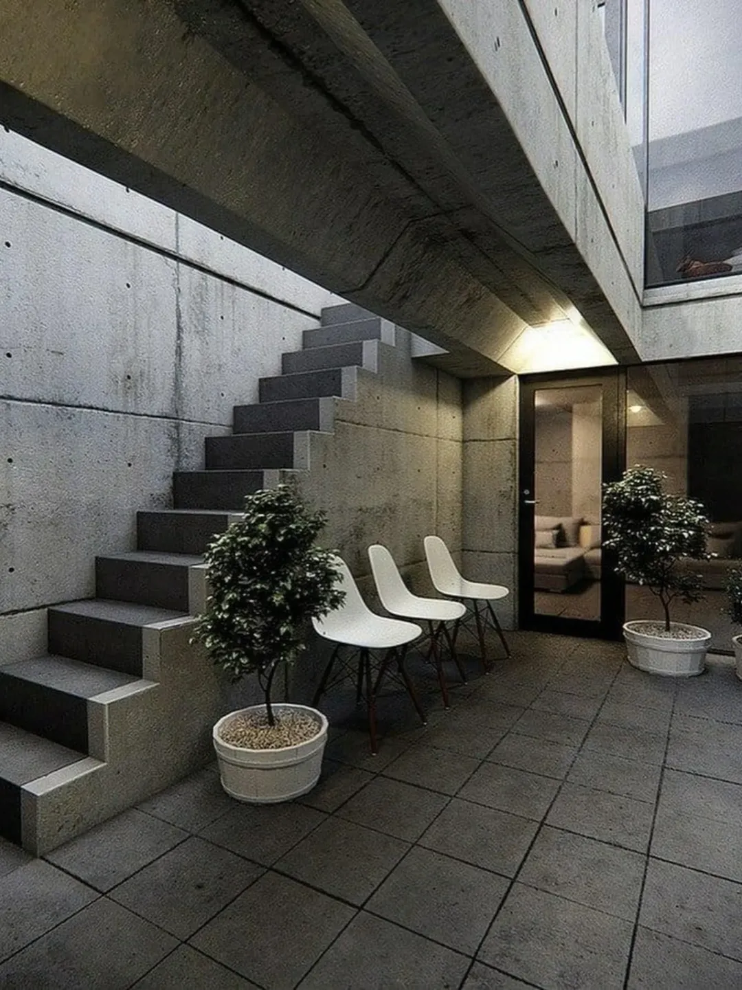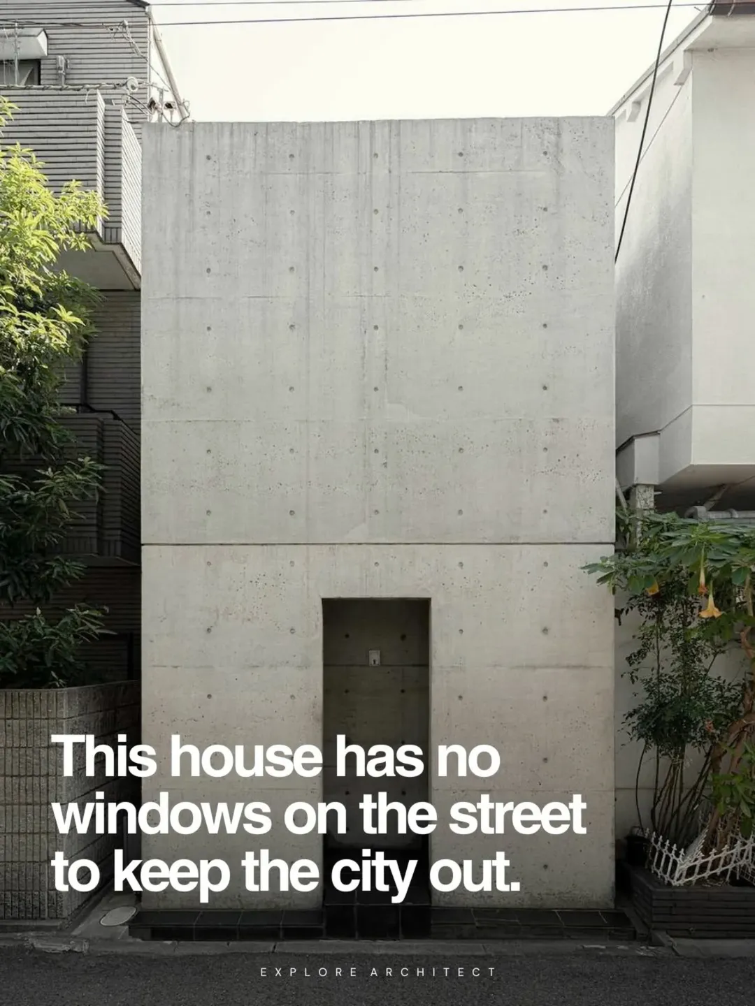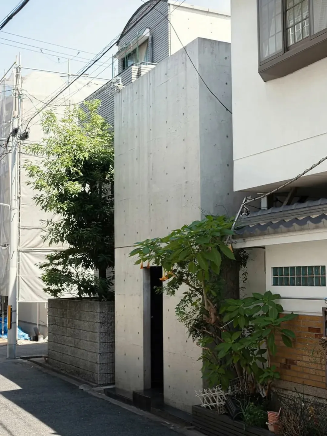 In 1976, architect Tadao Ando designed the Azuma House in Sumiyoshi, Osaka, Japan. The residence occupies a narrow plot between two traditional wooden row houses. It was built with smooth reinforced concrete and features no street-facing windows.
