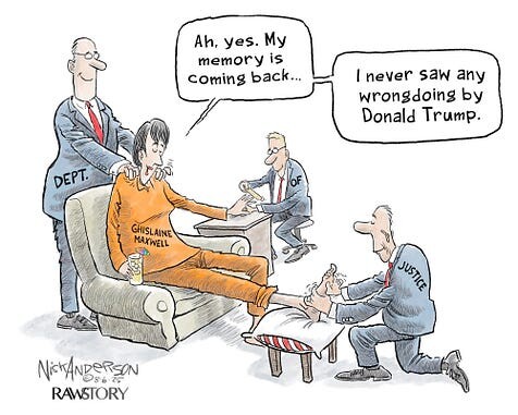 because I gotta tell ya, Ghislaine Maxwell has to plead ignorance on this thing. because if anyone had said anything at all to her when she swore to tell the truth that that sort of thing was frowned upon…