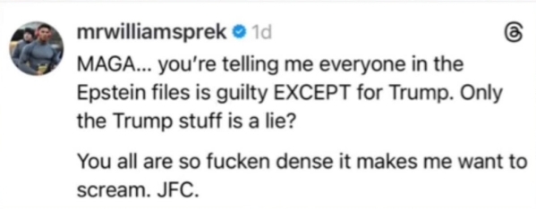 You are not untouchable, and you cannot keep hiding behind the presidency. Your crimes cannot be ignored any longer, and the world will not look away. You were a part of Jeffrey Epstein’s circle, walking alongside a predator, and in doing so you revealed the predator you have been all your life. You protected each other for so long and you now continue to shield countless powerful people who know the truth. The world knows it. The victims know it. You are a perverted, disgusting, vile, and corrupt asshole, a moral disgrace who has embarrassed the entire world, betrayed every standard of decency, and left a trail of destruction and humiliation that touches everyone unlucky enough to have crossed your path.