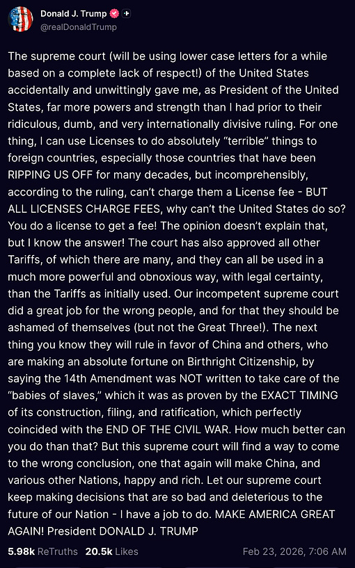 when Donny blithers on about “I can use Licenses to do absolutely ‘terrible’ things to foreign countries” he’s giving away the game. tariffs were never about responsible or coherent economic policy. they were about having a hammer with with to punish the shit out of any country that pissed him off.
