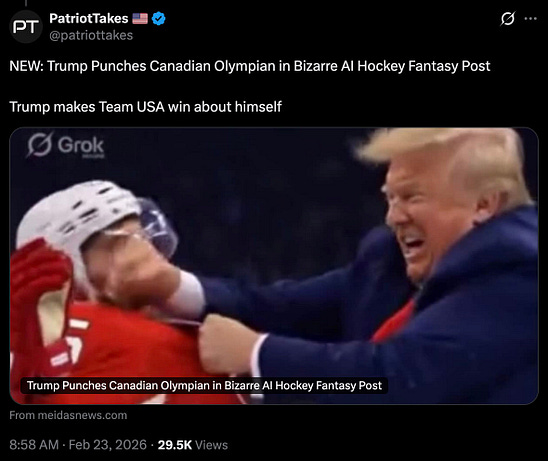 Jesus wept. Donny can’t just let the US Olympic hockey team enjoy their own victory. he has to horn in and pretend he had something to do with it. how weak. how sad. how small and petty.