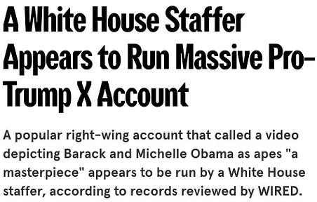 isn’t that lovely? there’s actually some bro inside the White House whose job is to crank out racist videos. what a great use of taxpayer dollars, am I right?