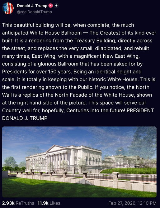 nobody voted for the historic and stately East Wing to be demolished so that Donny can replace it with some vulgar Epstein Dance Hall — and speaking of Donny’s dead pedo bestie, nobody voted for the continuing cover-up of a massive pedophile ring.