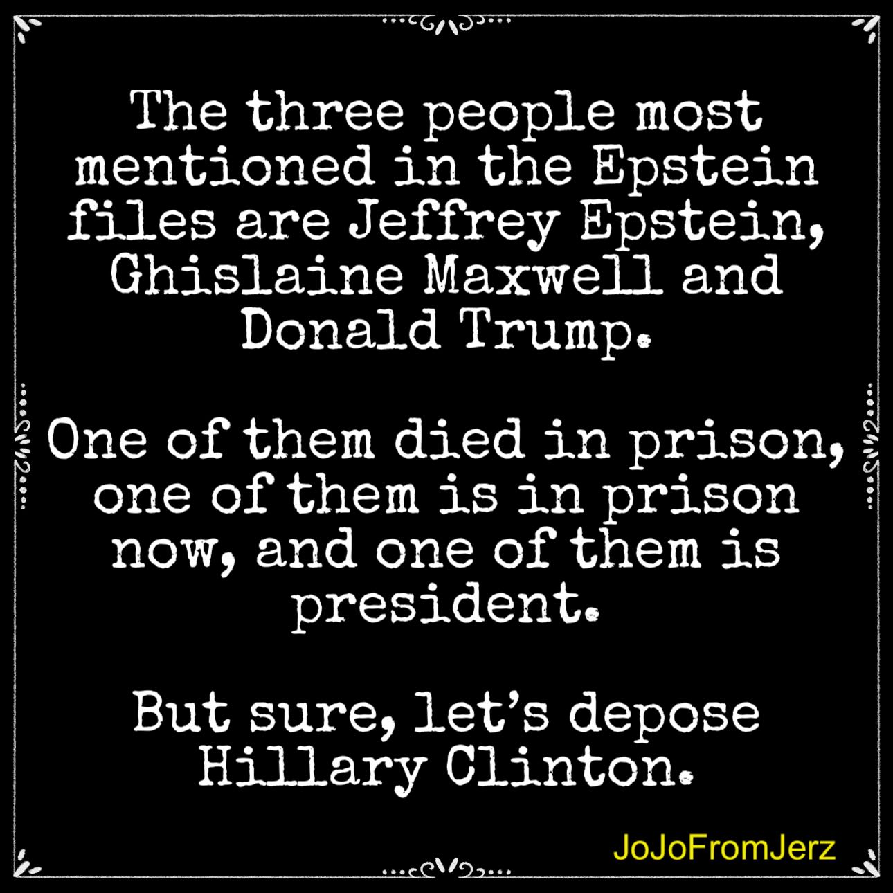 yeah, no. remember, the fucking idiot’s name appears in the Dead Pedo Bestie Files more times than Jesus’s name appears in the Bible.