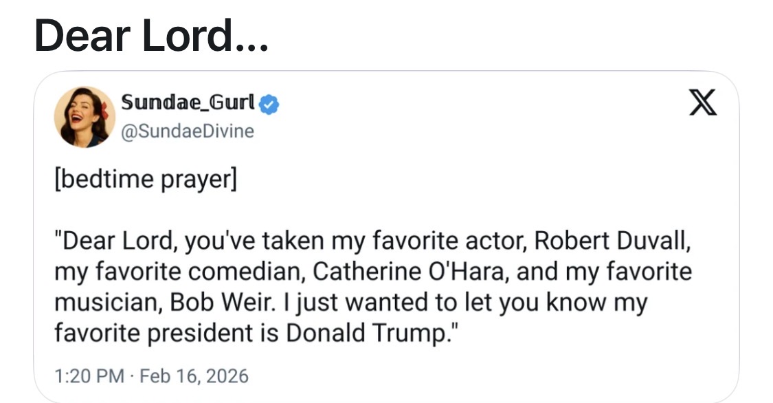 No, the tens of millions of Americans whose minds have been steadily poisoned by him, his willing political partners, comprised clergy, dudebro podcasters, opportunist internet vultures, and Fox New fakery will not sudden awaken from their cultic stupor and join the rest of us in benevolent and interdependent humanity.