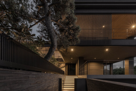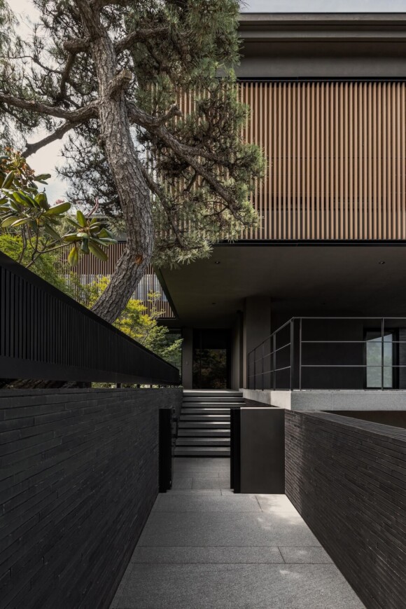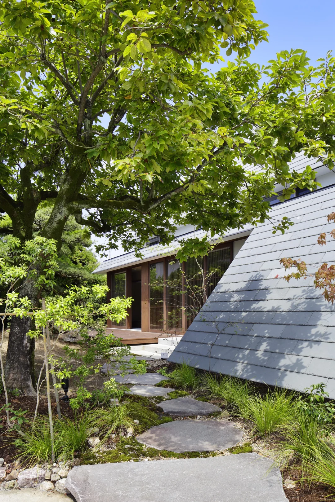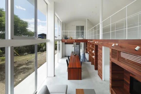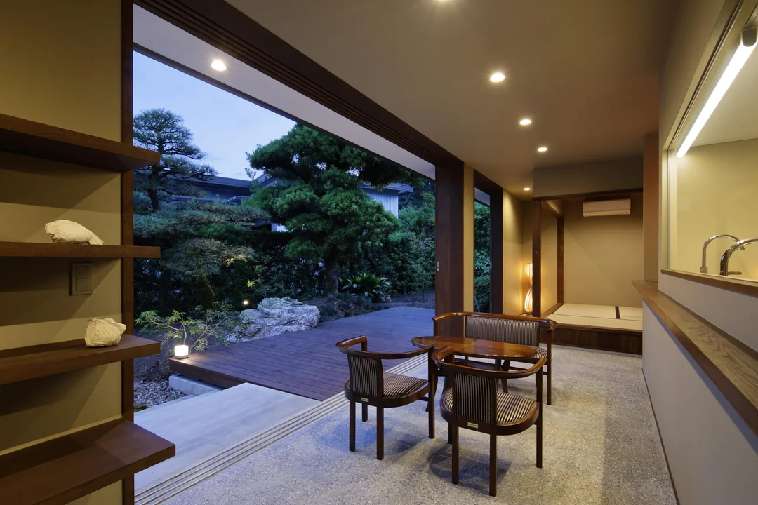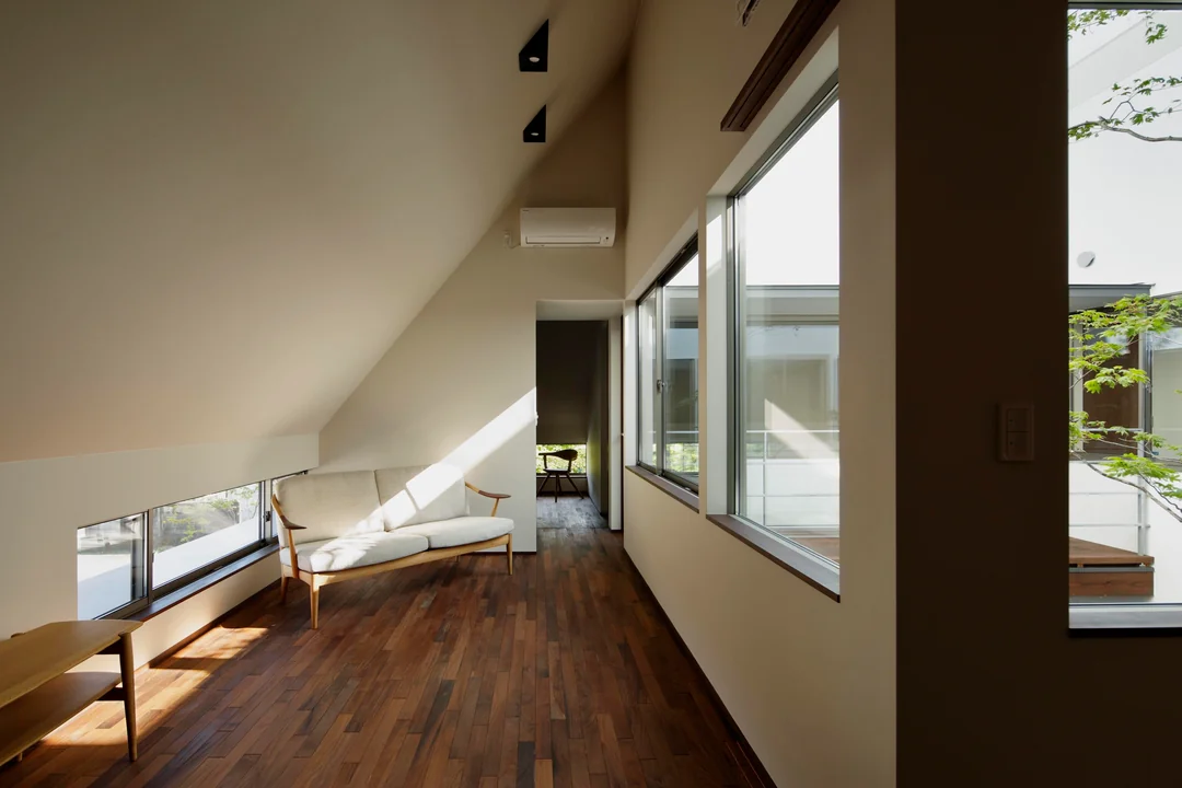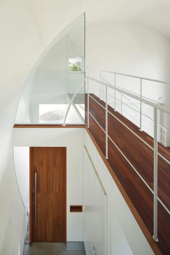 Set in a seismically active zone, Yumenomori showcases adaptive engineering and a deep respect for nature. Its facade features vertical wooden slats, terraces, and garden elements inspired by Japanese landscaping, creating harmony between the built and natural environments. A polished forest rock, placed in a symbolic garden and visible through expansive glass walls, anchors the home spiritually and visually.