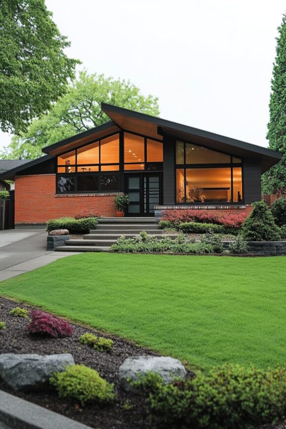Built in 1962, this Modernist home in Los Angeles was designed by architect Carl Maston as his personal residence. Because of the steeply sloping site, the swimming pool had to be placed in the front—cleverly hidden from the street by a walled embankment.