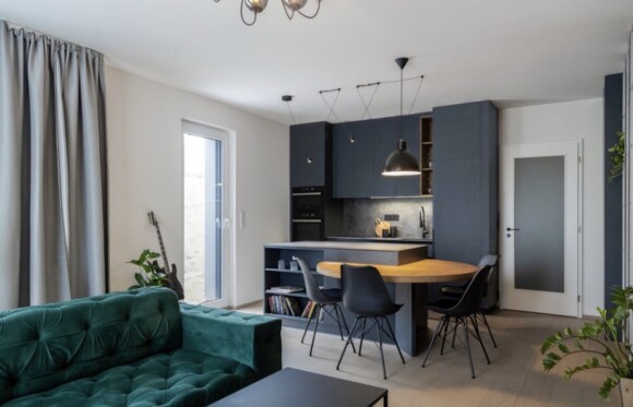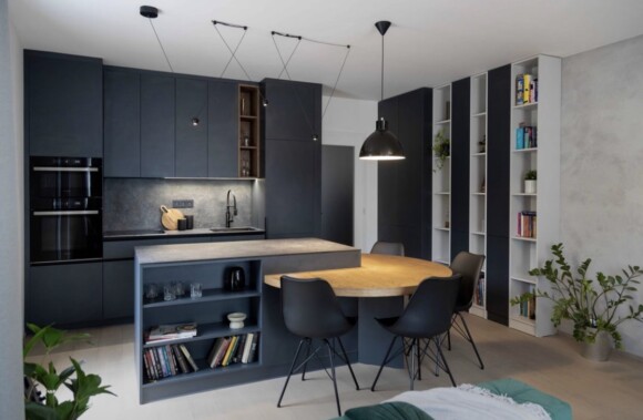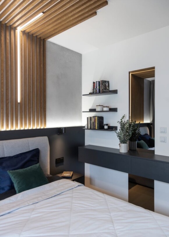 Inside, minimalist design prevails. Travertine, stone, and wood form a serene palette, while a striking red stone adds energy through custom furnishings. The interiors feature Poliform kitchen design, Henge lighting, and B&B Italia furniture, with Italian wood finishes hand-selected for warmth and balance.