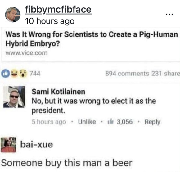 the fucking idiot had a perfectly normal reaction to the news.