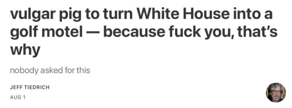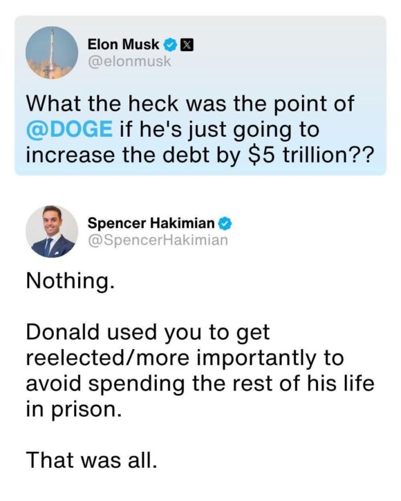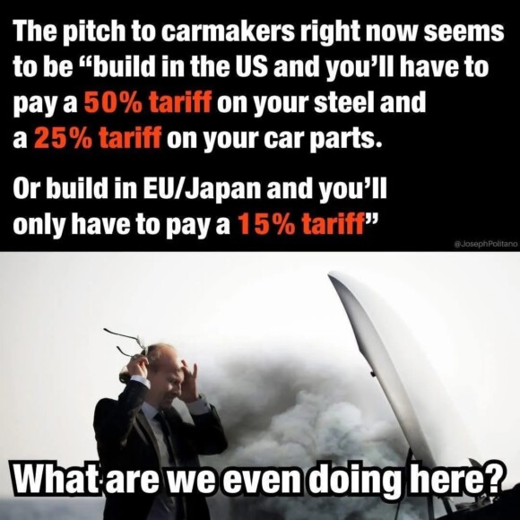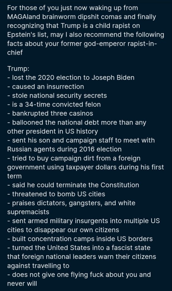but there I go again, prattling on about what Donny can’t do. Congressional Republicans aren’t going to stop him. they’ve completely abdicated their responsibilities. why did Holy Mike Johnson even bother to gavel Congress back into session, if they’re going to go sit there like useless lumps?