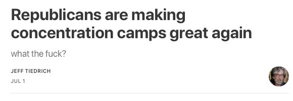 what the fuck is a question you’re going to be asking yourself a lot today, because just a few short years ago, none of this shit would have even been thinkable — and now, deliberate human rights abuses are official government policy.