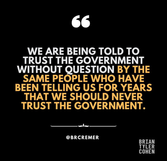 this time around, they’re not even bothering to gin up ‘proof’ of any threat — they’re looking us straight in the eye and telling us proof is irrelevant.