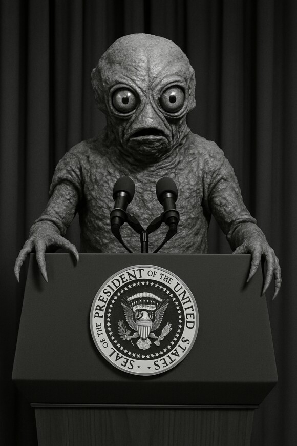 as is his usual wont, Preznit Fuckwit rambled incoherently for an hour and a half, blithering about fever-swamp hallucinations that exist only inside his big, dumb pumpkin head.