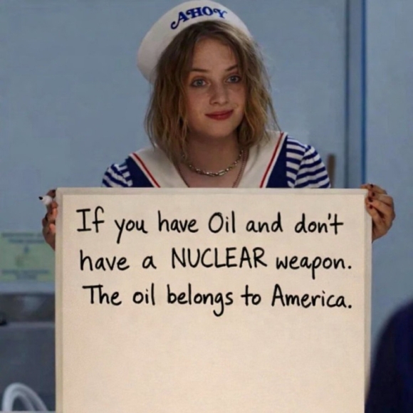 what the fuck? Donny’s just going ‘mine now,’ and straight up absconding with Venezuela’s oil, giving them jack shit in return?