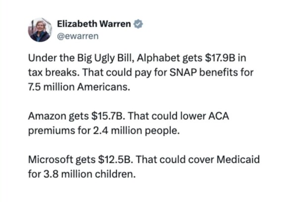 “If Jeff Bezos could afford to spend $75 million on the Melania movie & $500 million for a yacht to sail off to his $55 million wedding to give his wife a $5 million ring, please don’t tell me he needed to fire one-third of the Washington Post staff. Democracy dies in oligarchy.”