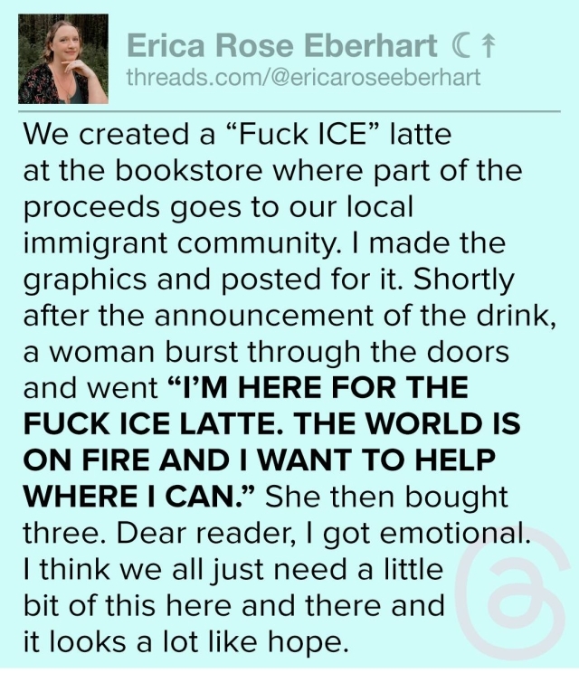 Ordinarily I would say, “And then I woke up,” but I dunno….based on the demonstrations occurring across the fucking country, Renee Good’s murder may—and I stress the word may—be that tipping point.