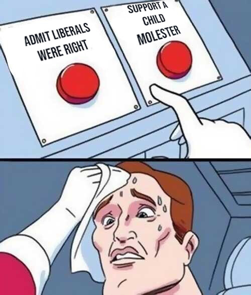 I suppose it was inevitable. I mean, in a lot of ways MAGA is the bastard child of QAnon and the Westboro Baptist Church. We’re talking about people who’ve devoted a seriously big chunk of their daily lives to thinking about sexualized anti-government conspiracies. People who’ve built complex, contradictory theories about political figures (mostly Democrats) and Hollywood elites maintaining a series of subterranean facilities where kidnapped children would be raped and then murdered for their adrenochrome. People who claim to believe trans folks are lined up outside high school bathrooms and locker rooms so they can sexually assault girls. People who spend a LOT of time thinking about forced sex with kids.