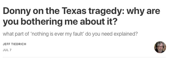 well, it’s really weird that Donny pulled none of that shit with Greg Abbott, the razor-wire torture-trap aficionado who runs Texas. he signed an emergency relief declaration for Texas almost immediately. just a coincidence, I guess.