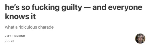 now, all these worthless Republican Reps can go back to their home districts and do fuck-all at home. don’t expect these profiles in courage to hold any town halls. they all know what will happen if they do: they’ll have to listen to angry constituents scream at them about why is my health insurance gone? why did the Space Nazi get a tax cut? — and above all: why didn’t you vote to release the Epstein Files?