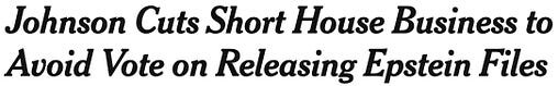 Speaker Mike Johnson announced on Tuesday that he was cutting short the week’s legislative business and sending the House home early for the summer on Wednesday to avoid having to hold votes on releasing files related to the accused sex trafficker Jeffrey Epstein.