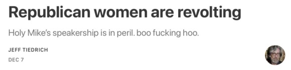 with Madge sporking her way out of Congress next month, the Republican barely-a-majority in the House will drop to 219 — making it that much harder for Holy Mike to inflict his Christofascist fuckery on We the People.