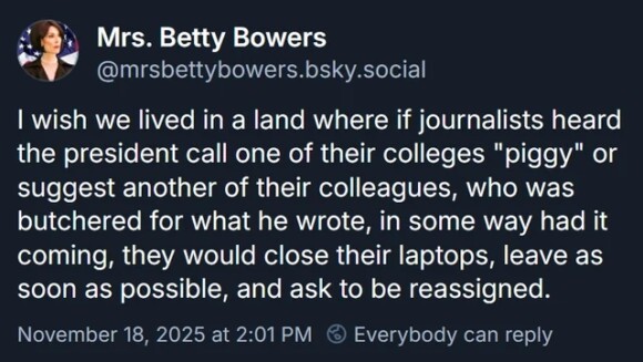 what a good look for this fascist administration, closing a public park and ejecting the press. they really don’t want We the People to find out what they’ve been doing to our House, do they?