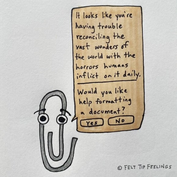 But at the same time, I don’t have an overreaching feeling of dread for the future (unless I spend too much time doomscrolling), but rather—and even when I do go doomscrolling—a feeling that everything’s still going to be all right. And it’s not years away…it’s right around the corner. Something is going to happen to put an end to this madness and wake us from this horrible nightmare.