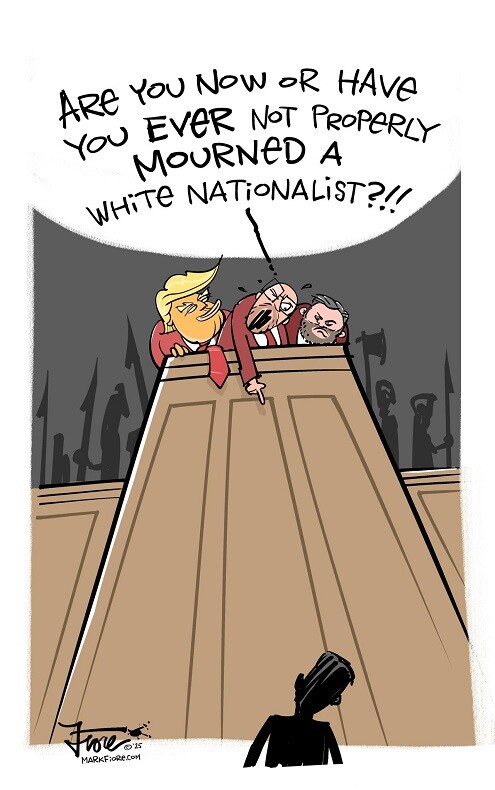 when it came time for the worthless scribblers of the corporate-controlled media to ask their questions, one thing everyone wanted to know was who will Donny be persecuting next?