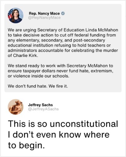 Jasmine Crockett: “absolutely. you know what? one of the things I do want to point out that’s not been laid out, that honestly hurts my heart, is when I saw the ‘no’ votes, there were only two caucasians. for the most part, the only people who voted ‘no’ were people of color. because the rhetoric that Charlie Kirk continuously put out there, was rhetoric that specifically targeted people of color. and so it is unfortunate that even our colleagues cannot see how harmful his rhetoric was, specifically to us, and I can tell you that a month prior to him passing away, he had actually gotten out on his podcast — I wasn’t aware of this at the time — but he got out there and he was talking negatively specifically about me, directly. so if there was any way that I was going to honor somebody who decided that they were just going to negatively talk about me, and proclaim that I was somehow involved in the ‘great white replacement’? yea, I’m not honoring that kind of stuff, especially as a civil rights attorney, and understanding how I got to Congress, knowing that there were people that died, people that were willing to die, that worked to make sure that voices like mine could exist in this place … and it is unfortunate that more of my colleagues, on my side of the aisle, could not see the amount of harm that this man was attempting to inflict upon our communities.”