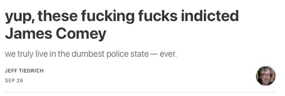 Comey posted the following video to social media. I detest this guy for what he did to the email lady in 2016 — but that doesn’t mean we shouldn’t all stand with Comey when he’s the victim of fucked-up fascism on steroids.