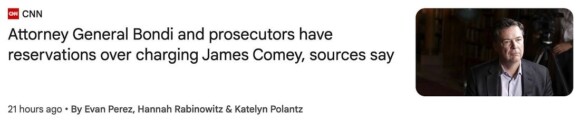 I can also tell you that even AG Pam Bondi knows that this is some bullshit — because she was against indicting Comey before she was for it.
