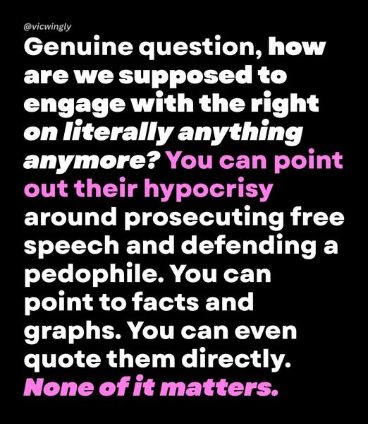 okay, all the dumbfuckery about ‘left wing terror cells’ is batshit insane, and very par for Matt’s course — but that first bit, about firing Pam Bondi for her prosecutorial overreach? man, it’s heartbreaking.
