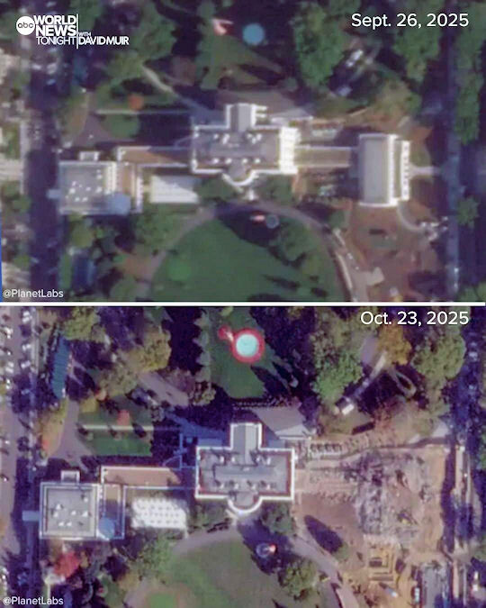 TFG has done none of that. He lied about his intentions and sent in the bulldozers. At first, the East Wing wasn’t going to be touched. That changed to they might take a little off the end, but do no major harm. And by now, we can see that that was 100% bullshit, because the East Wing is gone. Just, gone.