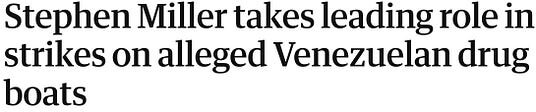 Stephen Miller, the White House deputy chief of staff, has played a leading role in directing US strikes against suspected Venezuelan drug boats, according to three people familiar with the situation. At times, his role has superseded that of Marco Rubio, the secretary of state and national security adviser.