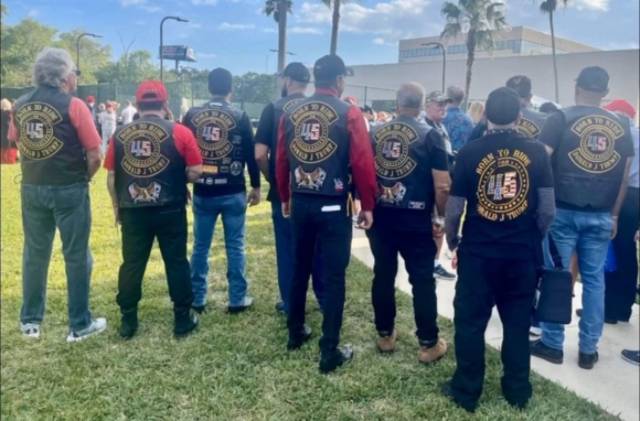 a picture is worth a thousand words, so feast your eyes on a bunch of grown-ass men wearing jackets bearing the words “Born to Ride Donald J. Trump.”