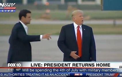 is it that Sundowning Grandpa Befuddlepants didn’t get lost on his way to the cart, and have to be guided back to it by a secret service agent? (July 6, 2017)