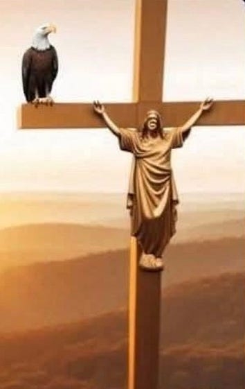 a brief note to whoever is responsible for this image: eagles are carrion birds. they eat dead things. is Mister Baldie here waiting for Microscopic Jesus to die, so he can chow down? is that really the message you’re intending to send to America’s fertile payload?