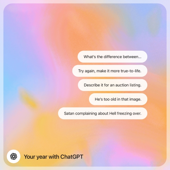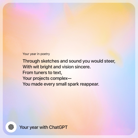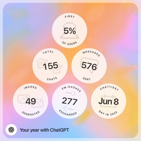 ChatGPT users can get their year-end summary by asking ChatGPT to “Show me my year with ChatGPT” in the ChatGPT app or on the web. Summaries are available for Free, Pro, and Plus users who have chat history and memory enabled for ChatGPT.